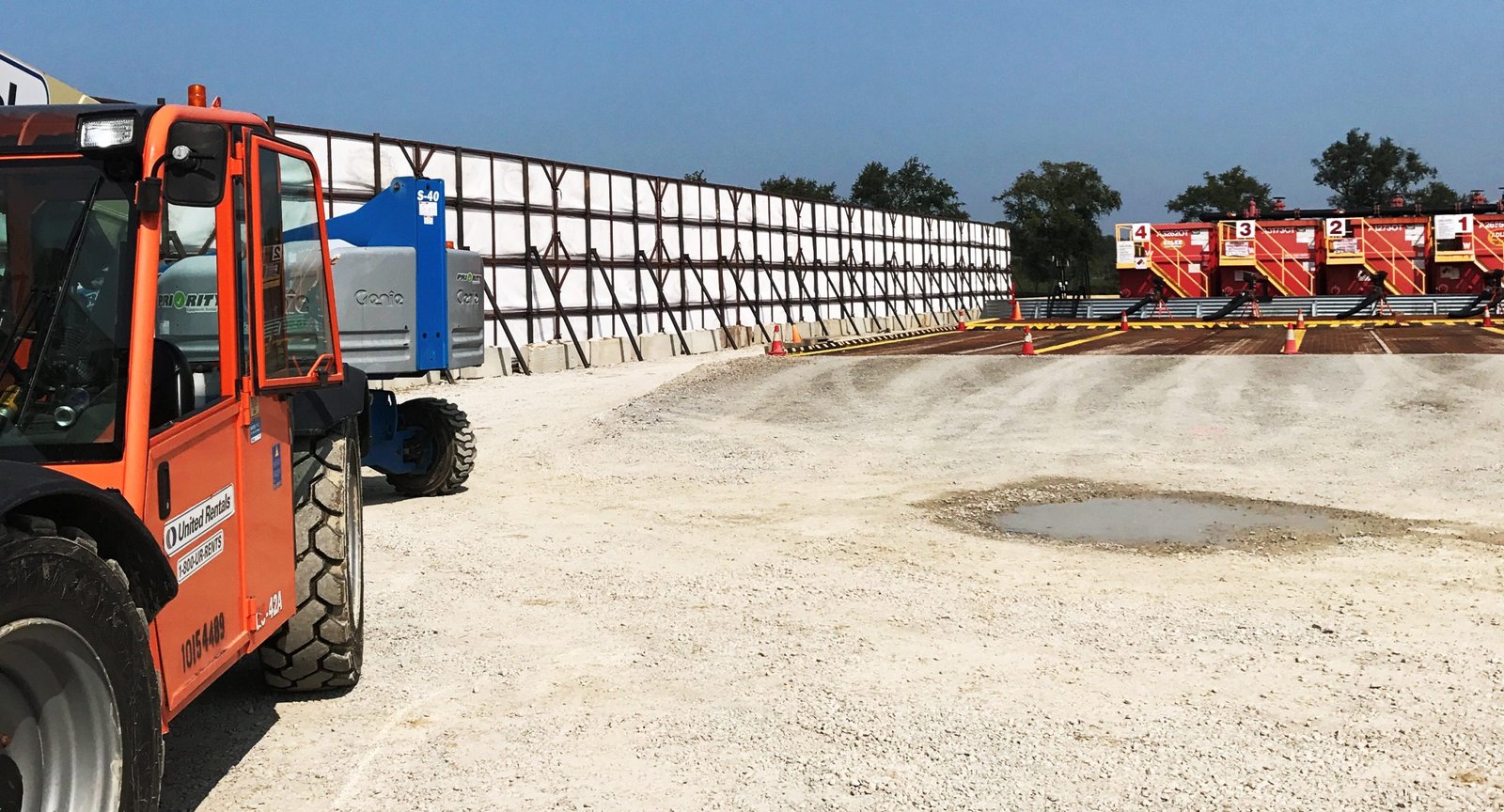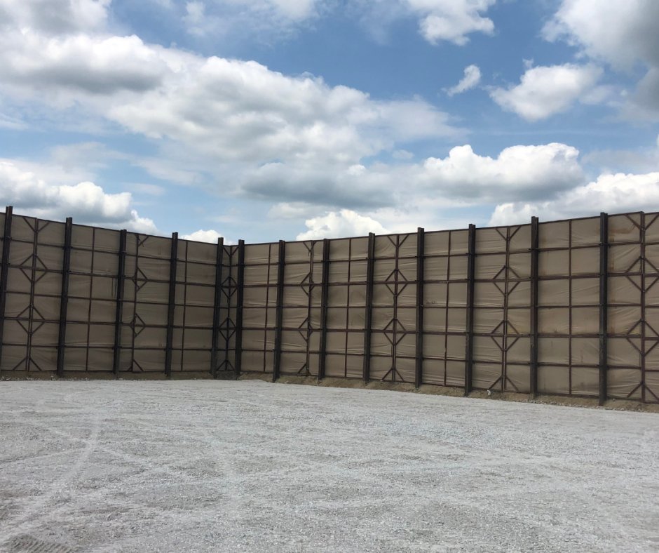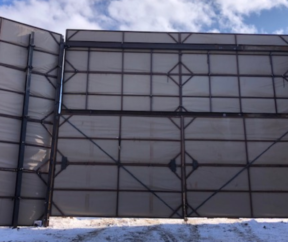 We can install our Temporary Acoustical Barriers in heights ranging from 8ft to 32ft tall. The individual acoustical panels measure 8’ tall x 20’ long and are constructed out of 16ga, 2-inch square tubing. Each panel is then covered with a custom-made acoustical blanket that is rated up to STC-32 and NRC-85.